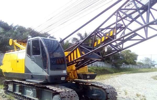 Dijual Crawler Crane Kobelco model 7045, tahun 1995, kapasitas maksimum 45 Ton, Panjang Boom 30 meter, lokasi Medan dan harga Rp. 3,15 Milyar.