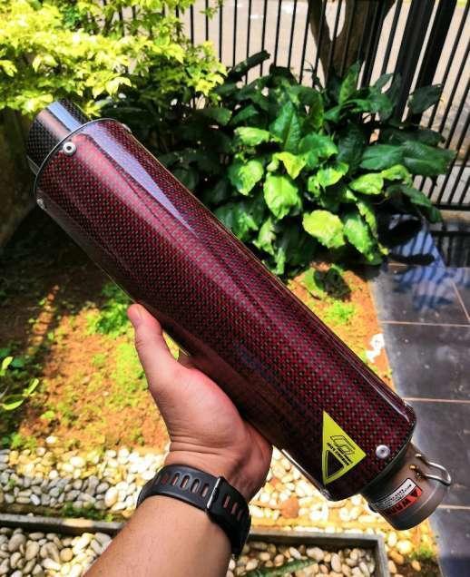 Silencer corse project full carbon warna merah (unik) include clamp carbon inlet universal 51mm panjang tabung 30cm, bisa buat motor apa aja tinggal bikin slipon ato